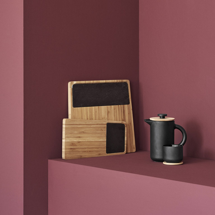 Servírovací prkénko navrhla pro dánskou značku Stelton Maria Berntsen. Prkénko je vyrobené z kvalitního dřeva a krajní část je z břidlice. Můžete jej použít nejen na krájení potravin při přípravě večeře, ale i k servírování.