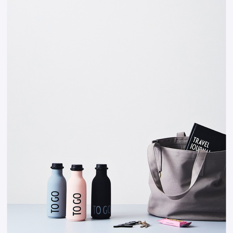 Praktická láhev na pití ve světle růžové matné barvě od Design Letters s nápisem To Go. Je vyrobená z pevného materiálu tritan, který je zároveň velmi lehký. Takže můžete láhev nosit v tašce do školy nebo do práce, ale i na sport.