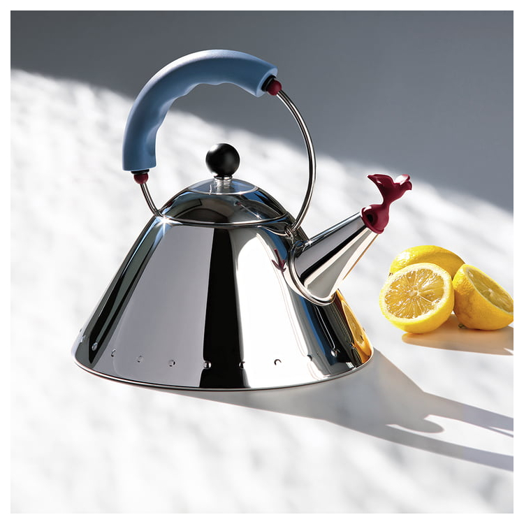 Nerezová konvice je dílem amerického designéra Michaela Gravese, který ji v roce 1984 navrhl pro italskou značku Alessi. Ikonická konvice získala patent na své estetické vlastnosti a stala se nejprodávanější konvicí celé značky. Kryt rukojeti, knoflík i píšťalka jsou vyrobeny z termoplastické pryskyřice. Magnetické ocelové dno je vhodné na všechny tepelné zdroje včetně indukce. Ovšem doporučuje se konvici nepoužívat na plameni větším než je sama konvice a při ohřívání na plynovém sporáku použít ochranou plotýnku před přímým žárem z plamenů do dna nádoby.