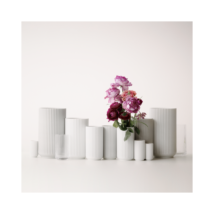 Ručně vyrobené vázy od proslulé dánské značky Lyngby Porcelæn jsou oblíbené zejména díky svému ikonickému minimalistickému designu s neodmyslitelnými kanelurami.