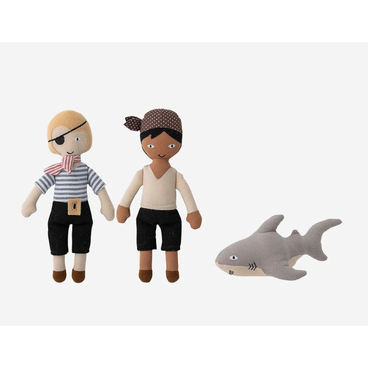 Dobrodružství na moři může začít! Hravá sada dětských hraček Mio Pirate od značky Bloomingville obsahuje tři figurky – dva piráty a žraloka, kteří okamžitě vtáhnou děti do světa fantazie a napínavých příběhů.