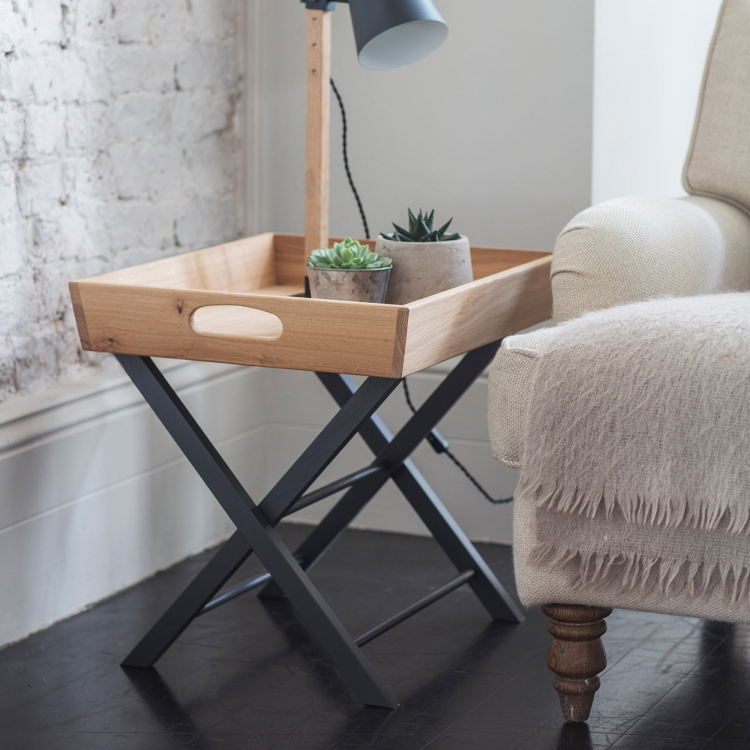 Elegantní skládací stolek Butlers Oak od britské značky Garden Trading je vyroben z kvalitní dubové dýhy a stojí na pevných nožkách z bukového dřeva, které jsou navíc opatřeny uhlíkovým nátěrem. Jedná se o velice variabilní a praktický kus nábytku. Stolek snadno přenesete i složíte. Můžete používat celý, nebo jako samostatný podnos na snídani do postele i přenášení nádobí. Díky efektivnímu designu se bude vyjímat v obývacím pokoji, ložnici i na terase.
