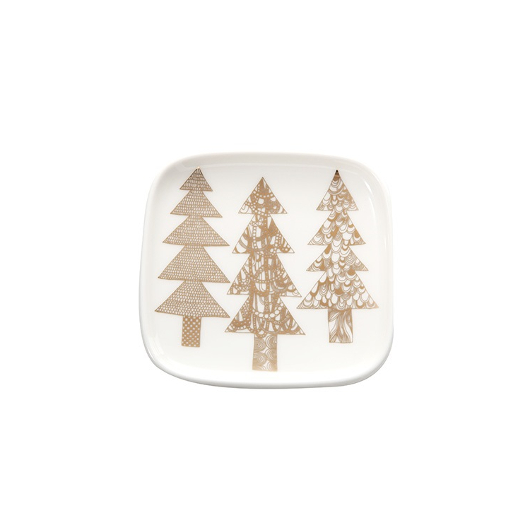 Talířek Oiva Kuusikossa White Gold 10x10 cm v jemné bílé barvě a s krásnou zlatou ilustrací smrčků je decentní a nádherný kousek z této jedinečné řady. Vysoce kvalitní glazovaná kamenina zaručuje dlouhou životnost. Pro Marimekko jej navrhl designér Sami Ruotsalainen.