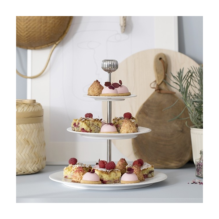 Jednoduchá elegance bílého třípatrového podnosu z dílny designéra Hans-Christiana Bauera je nadčasová a ohromuje právě svou čistotou a drobnými detaily. Jemné plastické rýhy a bílá barva jsou poznávacím znamením kolekce Hammershøi White.