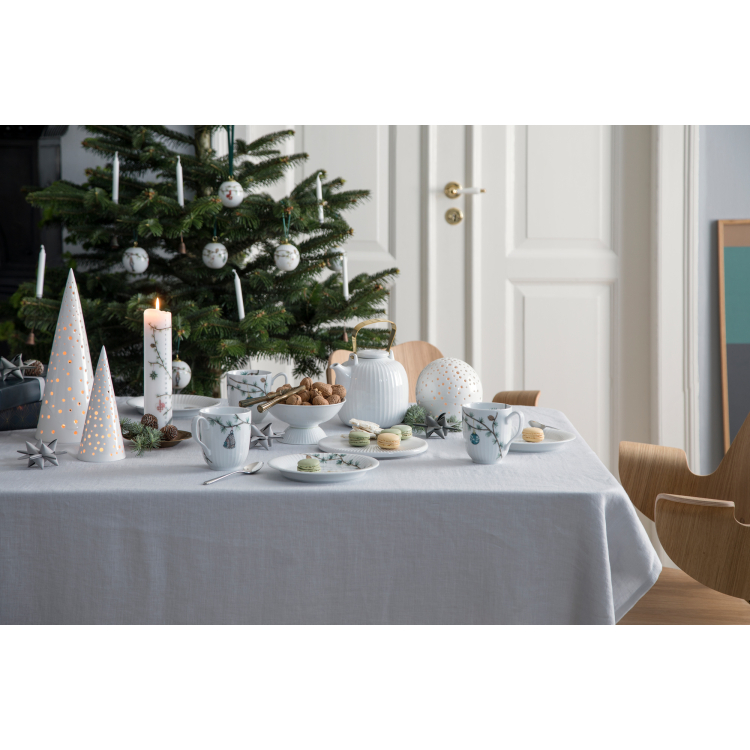 Podpořte ducha Vánoc a oslavujte tyto svátky klidu a míru po celý prosinec. Ručně vyrobený keramický hluboký talíř z kolekce Hammershøi Christmas je tou správnou volbou. Čistý bílý povrch s klasickými Kählerovskými drážkami je zdoben florální ilustrací borovicové větve propojující celou vánoční sérii, na větvičce je pověšeno jmelí a srdce, symboly lásky.